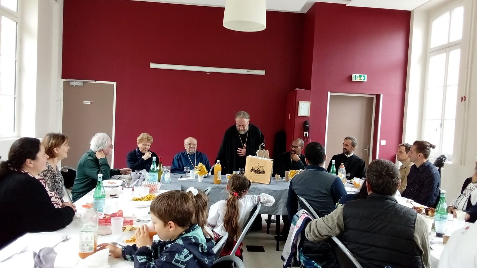 Suite à la Divine Liturgie, nous nous sommes retrouvés dans la joie et la bonne humeur autour d’un délicieux repas concocté par l’ensemble des Paroissiens, nous permettant à tous de vivre un moment convivial, chaleureux et fraternel en présence de notre cher Monseigneur Élisée. Ce banquet nous réunissant tous nous a permis de discuter, rire, s’amuser et bien entendu se régaler, favorisant l’entente, la cohésion, l’amitié et le bien-être des Chrétiens de la Paroisse. Nous avons eu le plaisir d'être très nombreux, venus de différentes origines, ceci représentant la diversité culturelle de notre communauté venue de toutes les aires du monde orthodoxe.